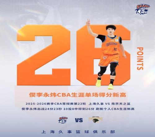 2026年1月19日,2025-2026赛季CBA联赛常规赛第17轮,青岛崂山啤酒客场对阵浙江方兴渡。本场比赛,韦瑟斯庞、米奇...
