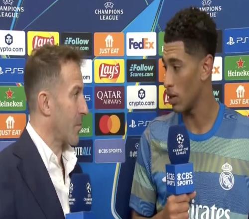雷速体育10月23报道 欧冠联赛阶段第三轮,皇马在主场以1-0的比分战胜尤文图斯。赛后,进攻功臣贝林厄姆接受了C...
