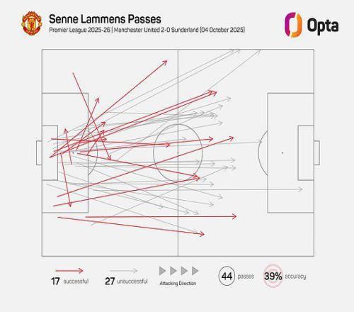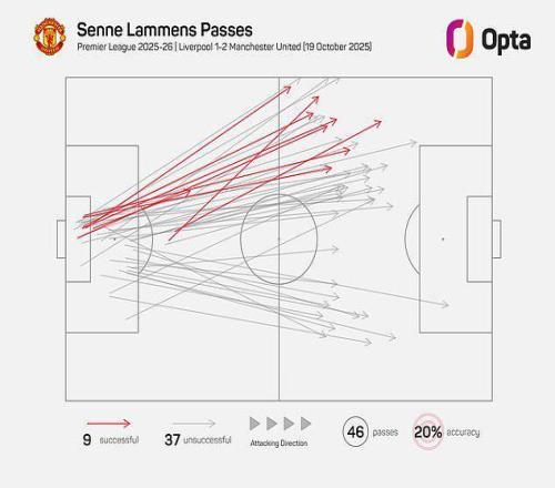 在安菲尔德球场,曼联门将森内-拉门斯几乎将所有46次传球中的44次都直接长传出去。面对利物浦前场压迫如此凶猛的球队,试图从后场组织进攻无异于自找麻烦。