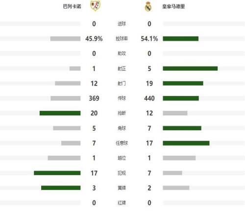 第60分钟姆巴佩才在禁区左侧完成了全场比赛第一脚打门,但没有能够命中目标,不甘心一场平局的阿隆索,随后连续换上塞巴略斯、罗德里戈和阿诺德,想要提升进攻的质量,但巴列卡诺没有给银河战舰打破僵局的机会,如愿将0-0的比分保持到了终场。